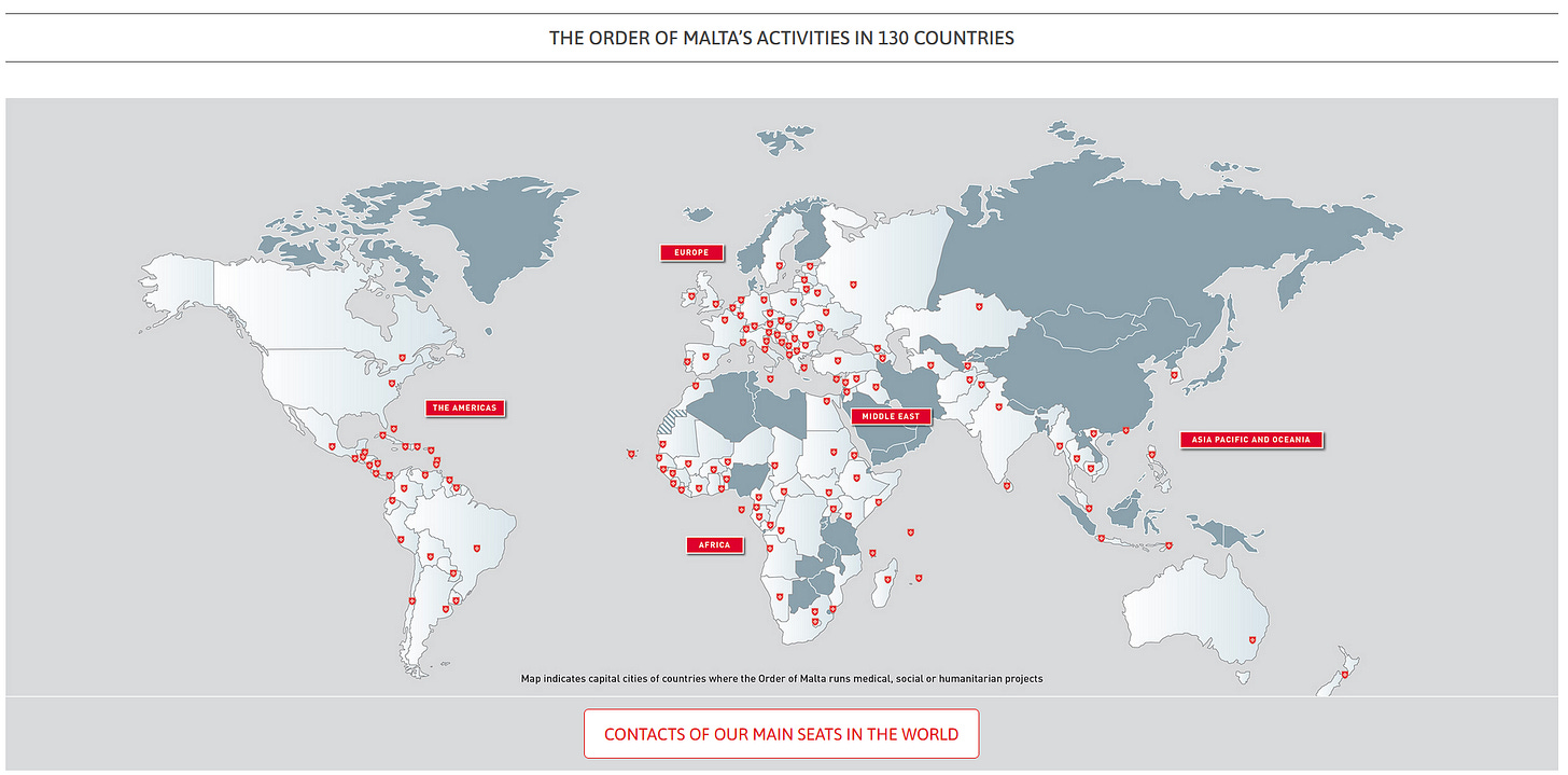Yet, surprisingly, this order still exists1 and is even considered a sovereign entity under international law! It has its own passport, diplomatic relations with 113 states2 , which may include embassies3 , is a permanent observer member of the United Nations4 , and even has two buildings in Rome, which are legally located outside Italy and have their own sovereignty5 , like the Vatican.